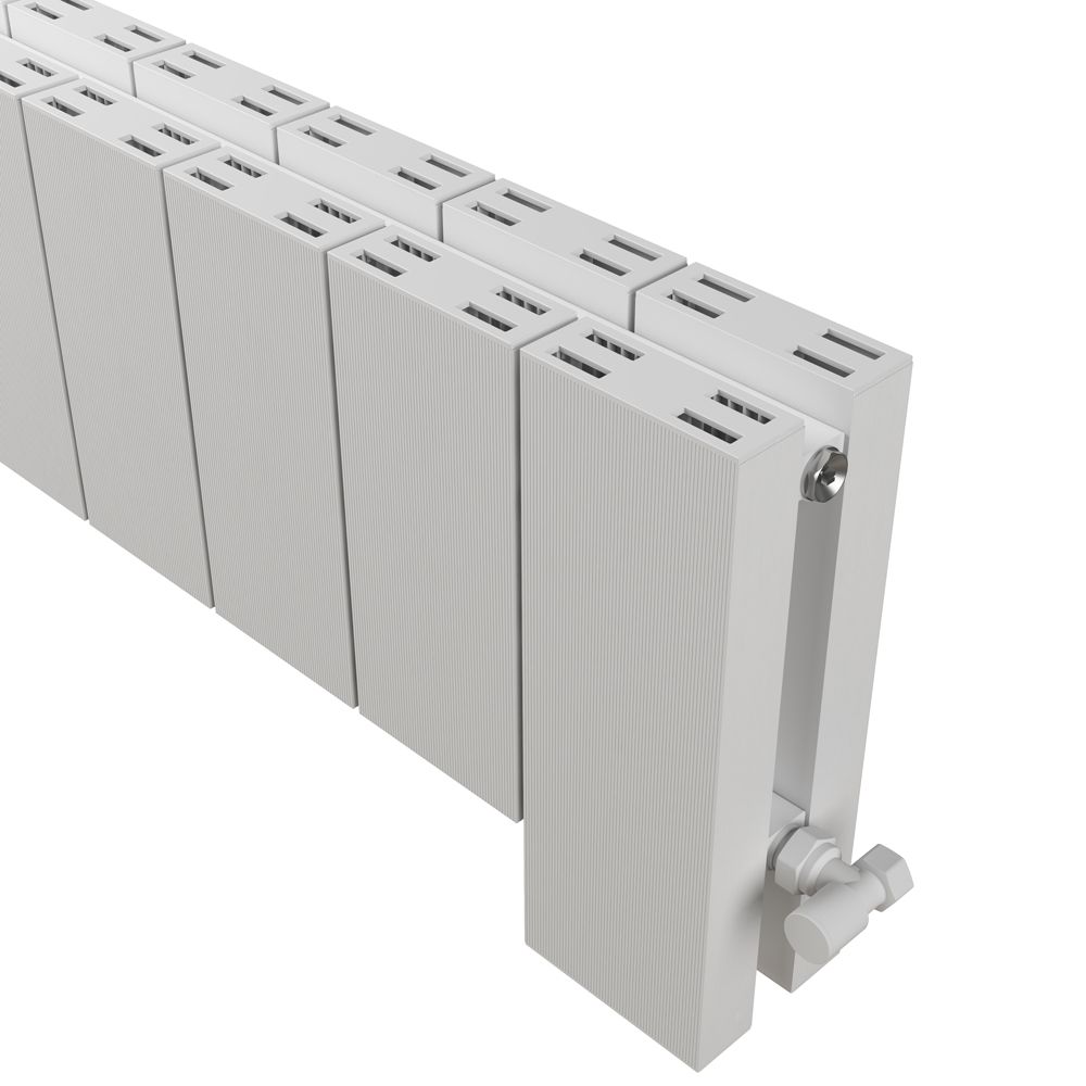 The Carisa Elvino Floor is a contemporary low level aluminium designer radiator that's perfect for installation under low windows , in conservatories, or beneath large glass expanses where wall space is non-existent. This floor-mounted radiator has integrated feet for a stable and secure installation. It also boasts a rapid heat-up time and is highly energy efficient.
