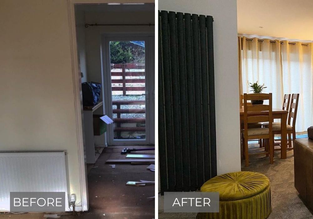 From bland beige to beige beauty. @thehouserenovators have transformed their living space into a scandi style sanctuary and we love the placement of the statement vertical radiator to replace the two old convectors.