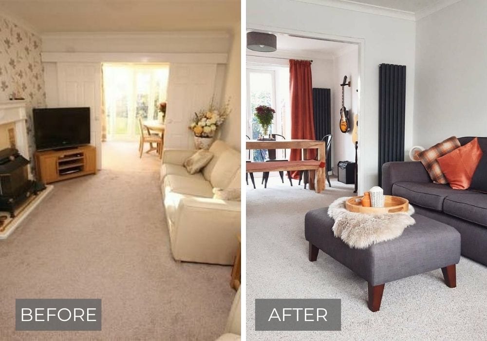 @our_ne_nest are giving us cosy Autumn vibes with their burnt orange accessories, natural textures and warm tones. We love how they have created symmetry with their double vertical radiator feature and the before and after transformation is just too good!