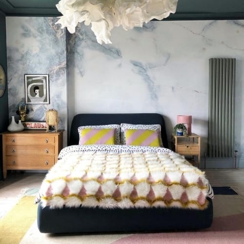 Interior blogger Sandra over at @the_idle_hands designed a dreamy bedroom for her daughter. We love the choice of the sage green Aruba vertical radiator against the beautiful marble feature wall.
