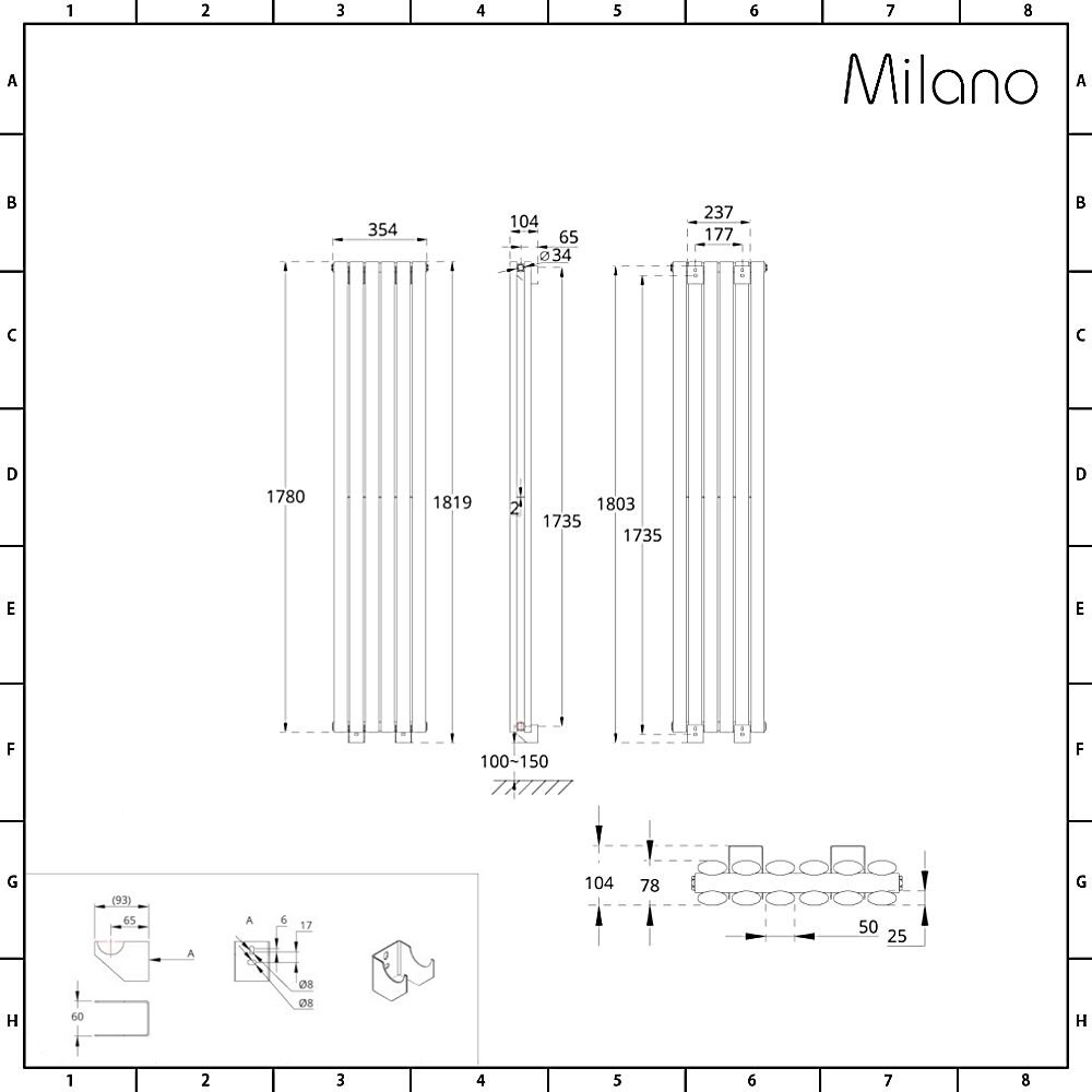 Milano Aruba - Light Grey Vertical Designer Radiator 1780mm x 354mm (Double Panel)
