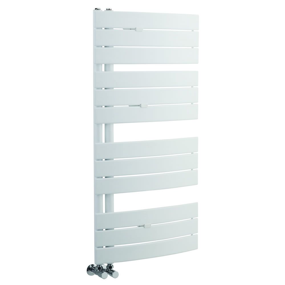 The Milano Azore 1080mm x 550mm white curved heated towel rail effortlessly combines designer style with superb functionality. Featuring an attractive curved design and a hard-wearing white finish, the Azore heated towel rail will give you toasty warm towels in no time thanks to its excellent heat output.