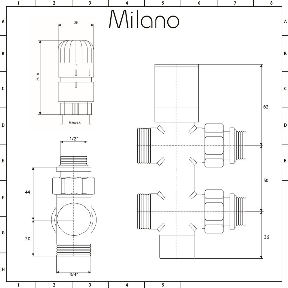 Create a smart and coordinated look to your radiator, with these stylish, thermostatic H-block straight radiator valves from Milano.