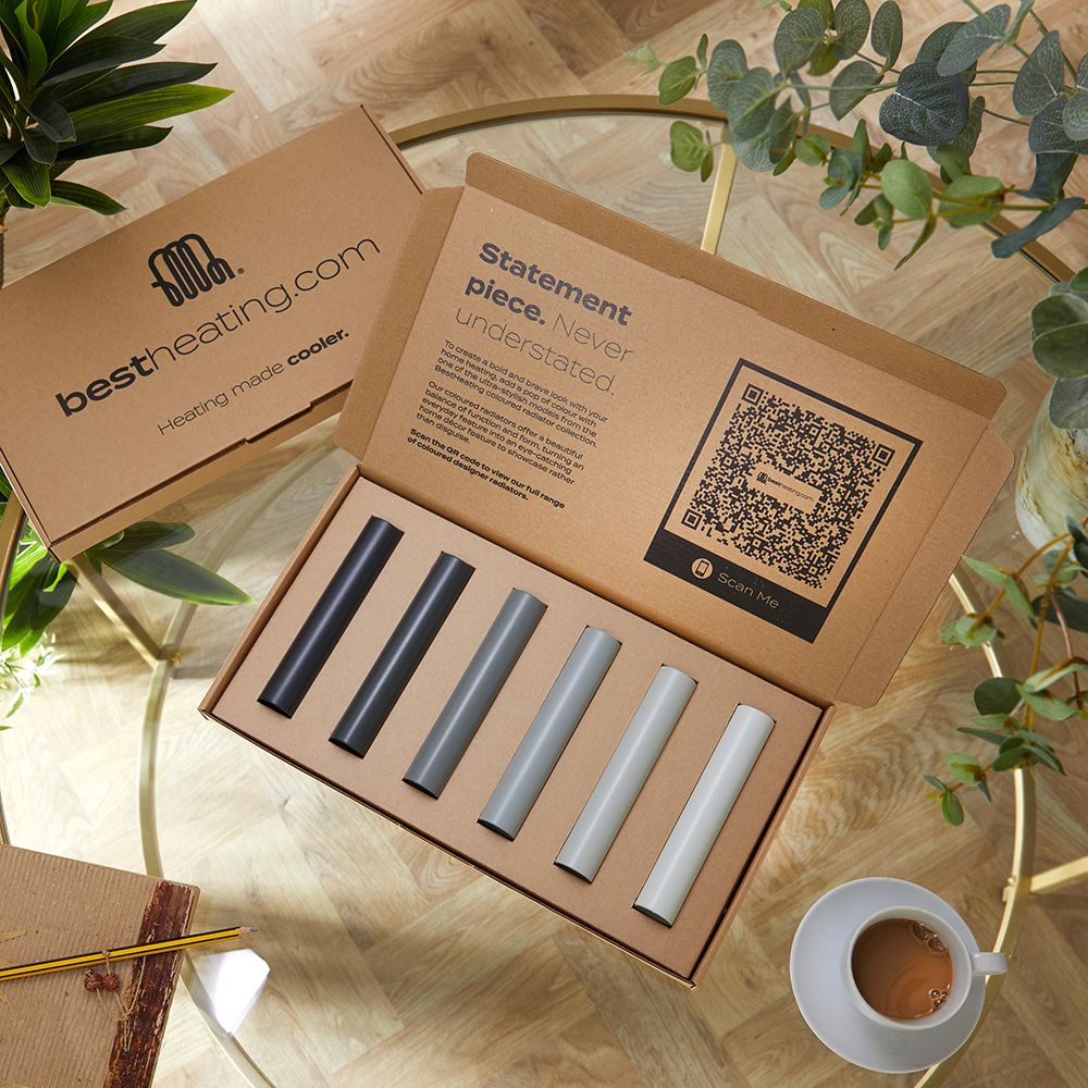 The Milano all greys radiator colour sample box allows you to discover all our grey radiator colours, so you can test out at home to see which shade works the best. These samples make it easier for you to choose your perfect shade of grey, so you can be sure it will elevate your home's interior.