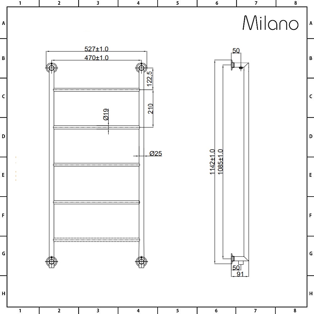 Milano Derwent - Chrome Traditional Minimalist Heated Towel Rail - 1142mm x 527mm