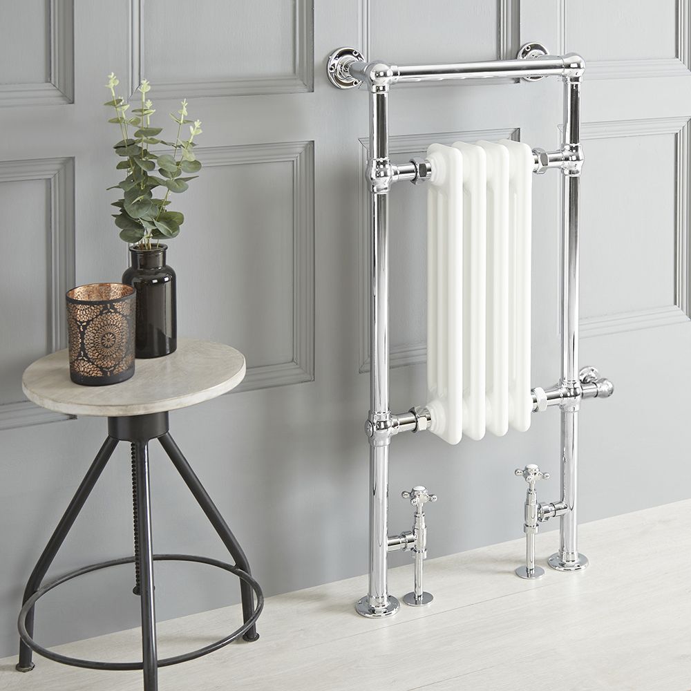 Combining traditional design with modern heating technology, this heated towel rail will create a look that will endure the test of time. It features chrome tubing and a white column radiator insert made from superior quality steel for guaranteed durability. What’s more, it can be fitted close to the bath or shower, thanks to the heating element, which has a high level of ingress protection against water and dust.
