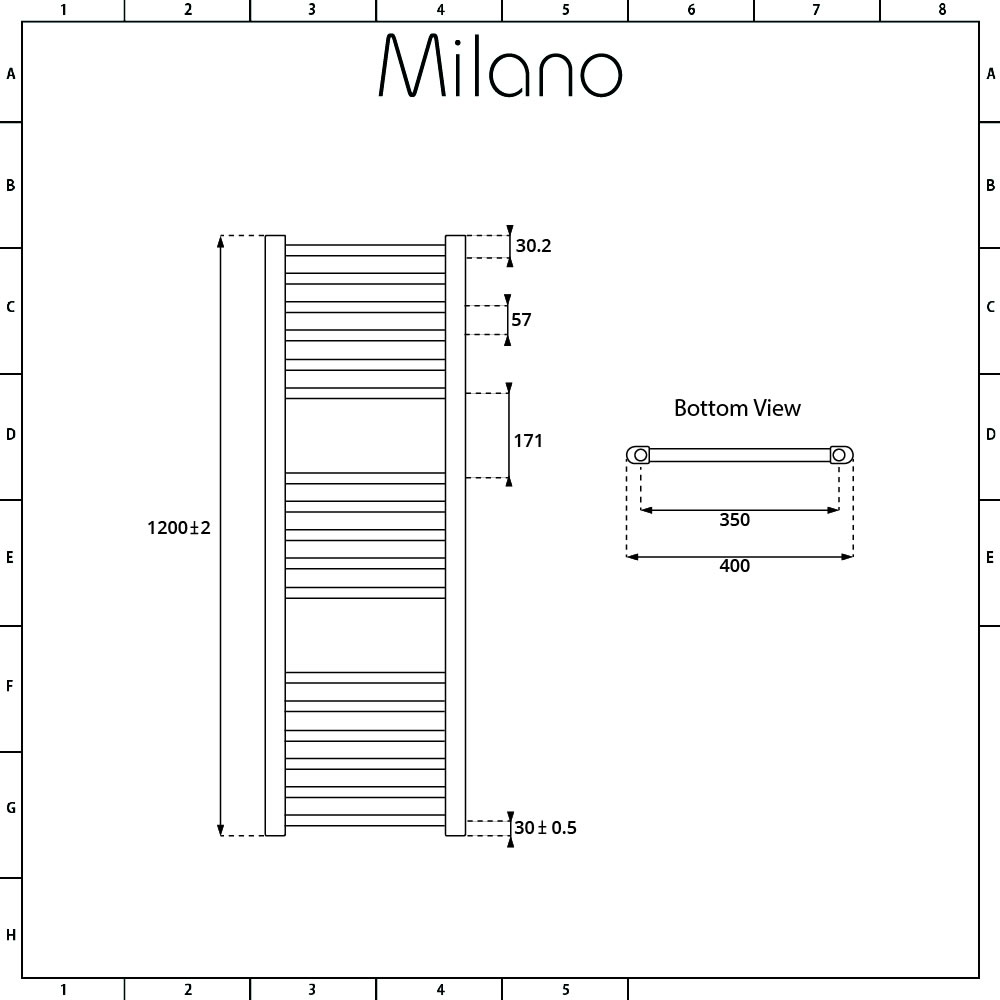 Milano Ive Electric - Straight White Heated Towel Rail 1200mm x 400mm