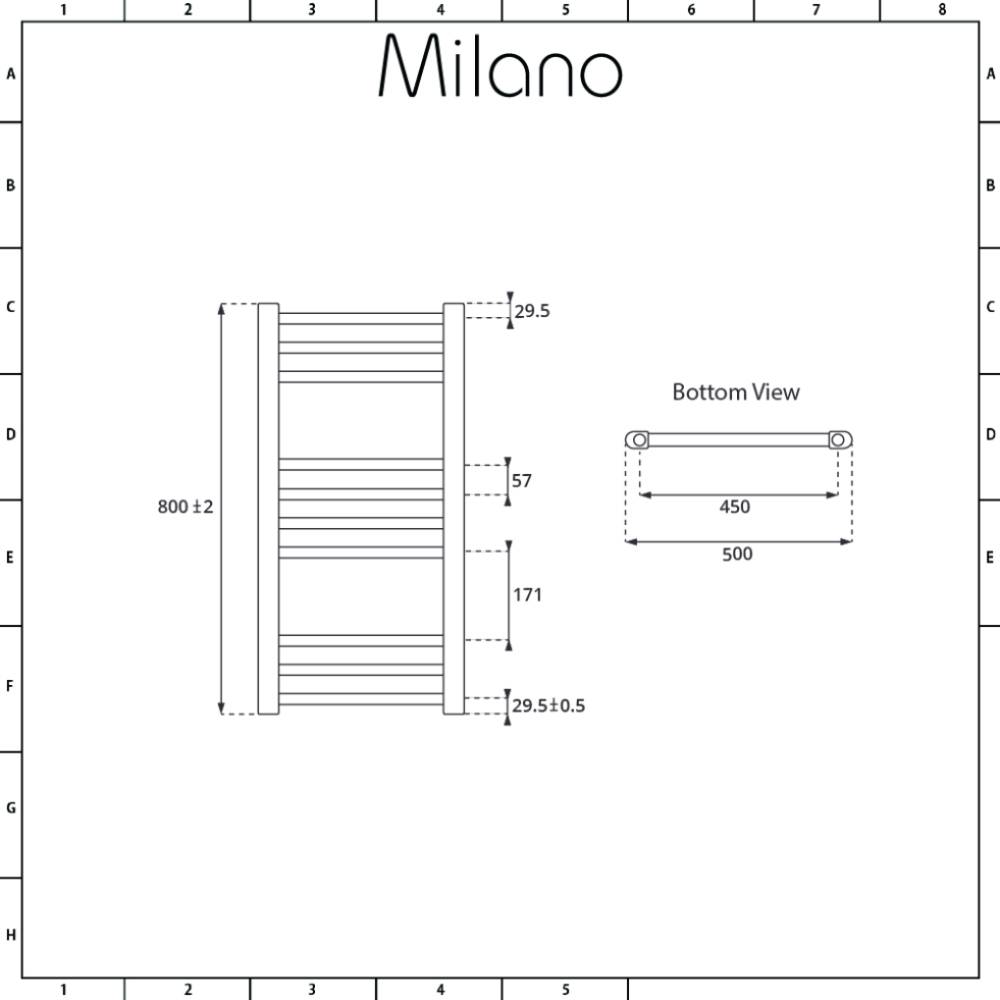 Accentuated by an attractive white powder coated finish to complement any contemporary décor, the Milano Ive 800mm x 500mm dual fuel flat heated towel rail will give your bathroom a touch of modern elegance. Long-lasting strength and durability are assured thanks to the premium quality steel construction.