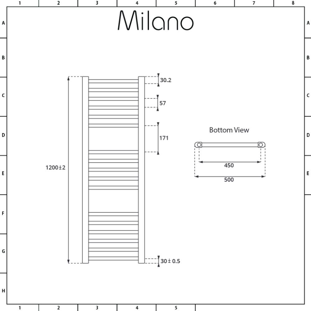 Milano Kent - Chrome Dual Fuel Straight Heated Towel Rail 1200mm x 500mm