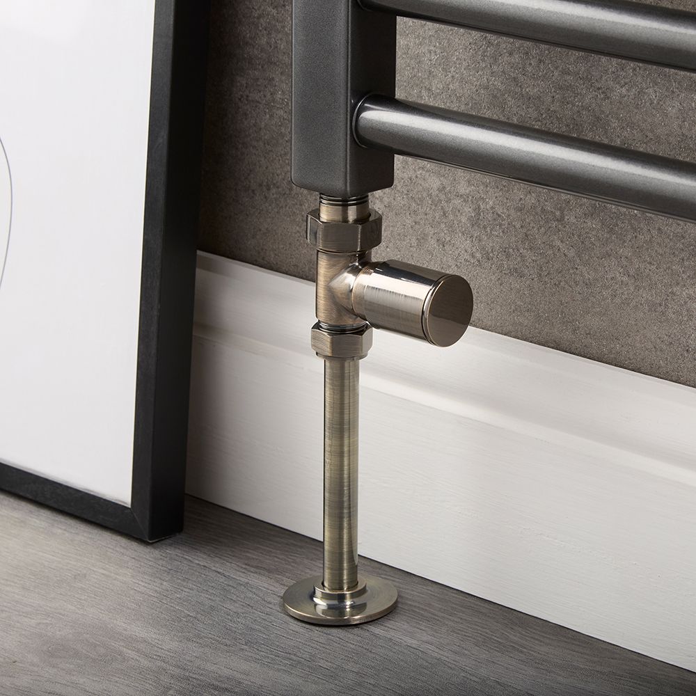 Further enhance the overall look of your new modern radiator or heated towel rail with the Milano dark brushed brass straight radiator valve and pipe connector set. Compatible with all Milano radiators and heated towel rails, the valves and pipe connectors feature a dark brushed brass finish, creating a look that's stylish and coordinated.