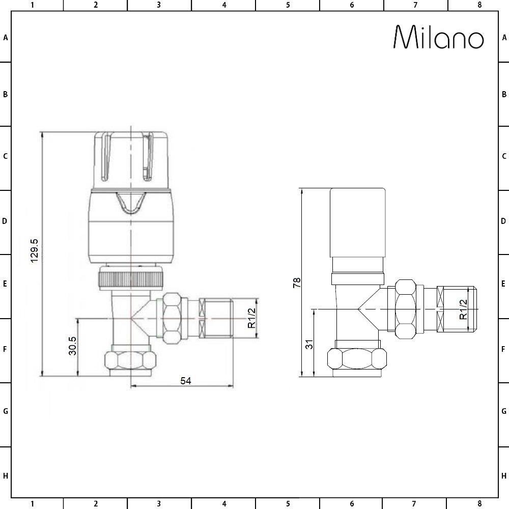 Complete the look of your designer radiator or heated towel rail with the Milano thermostatic angled radiator valve and pipe connector set. The valves and pipe connectors have a modern design and a durable chrome finish and so ensure a coordinated look.