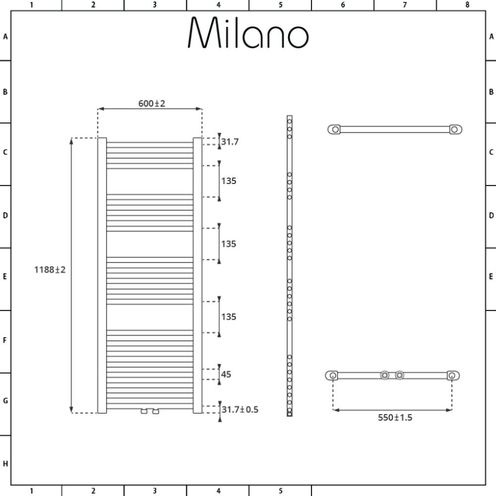 Accentuated by a sleek chrome finish for an elegant feel, the Milano Neva 1188mm x 600mm dual fuel heated towel rail will give your bathroom a modern style and allows you to neatly hang your towels ready for use. The dual fuel functionality allows the towel rail to perfectly heat your towels whenever you need them and can be used as part of a central heating system or using the 400W Rotfil Heating Element if required.