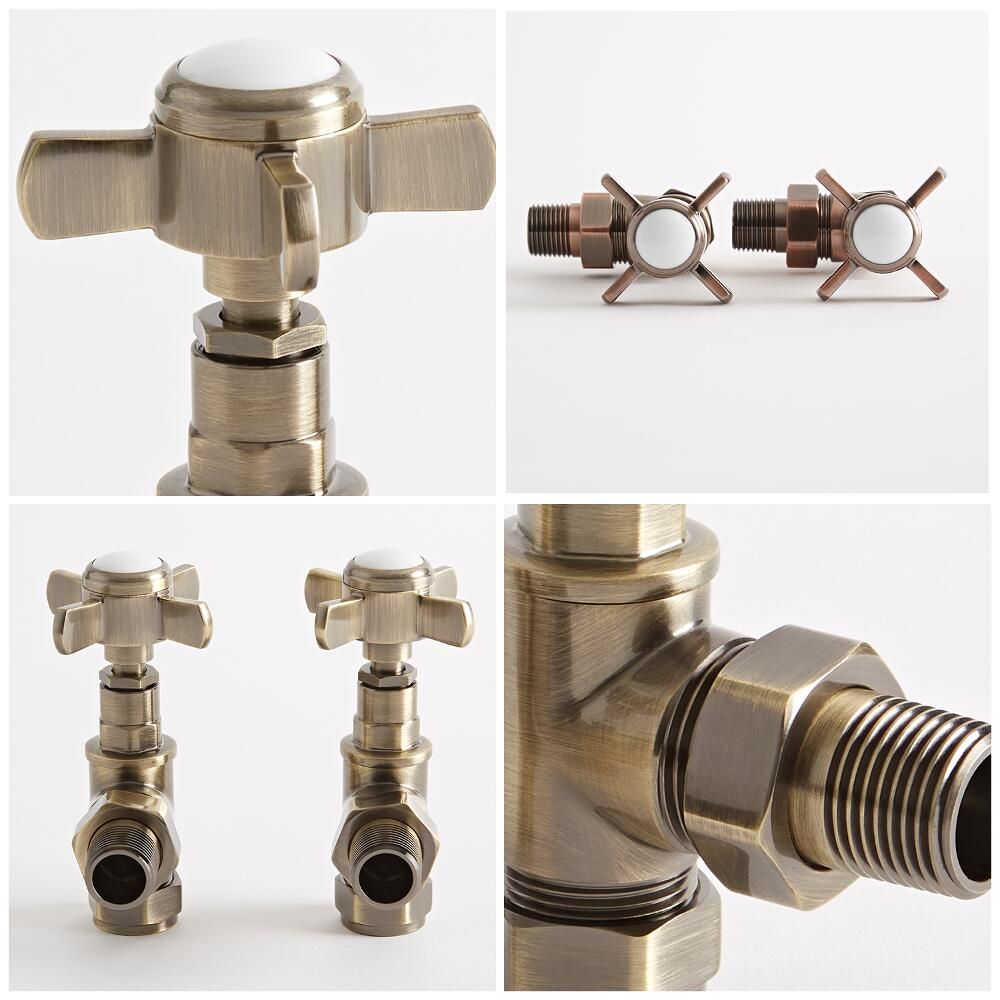 Create a stunning traditional look and add the finishing touches to your new radiator or towel rail with the Milano brushed brass angled radiator valves.