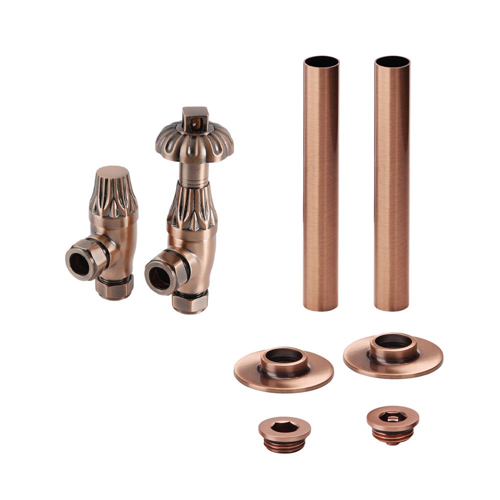 Milano Windsor - Antique Style Thermostatic Angled Radiator Valve and Pipe Sleeve Set - Choice of Finish