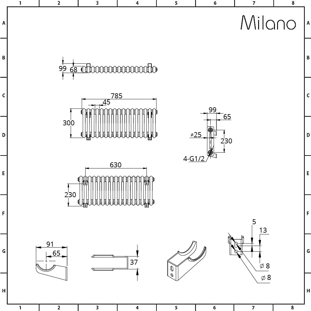 Milano Windsor - Horizontal Double Column White Traditional Cast Iron Style Radiator - 300mm x 785mm
