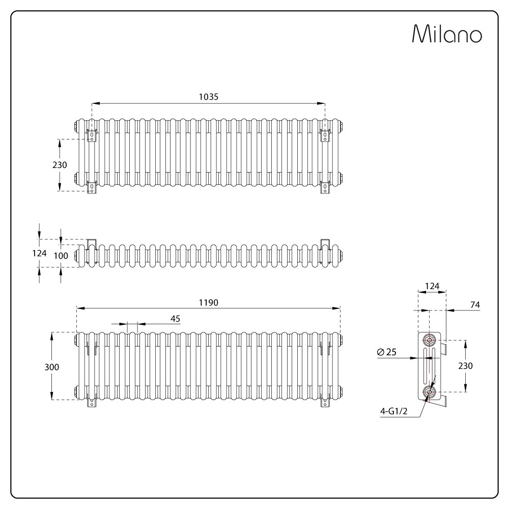 Milano Windsor - Lacquered Raw Metal Traditional Horizontal Triple Column Radiator - 300mm x 1190mm