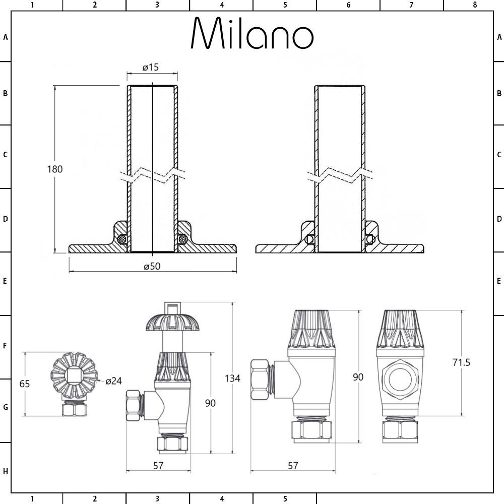 The valves and pipe connectors can be used with all Milano radiators and heated towel rails.