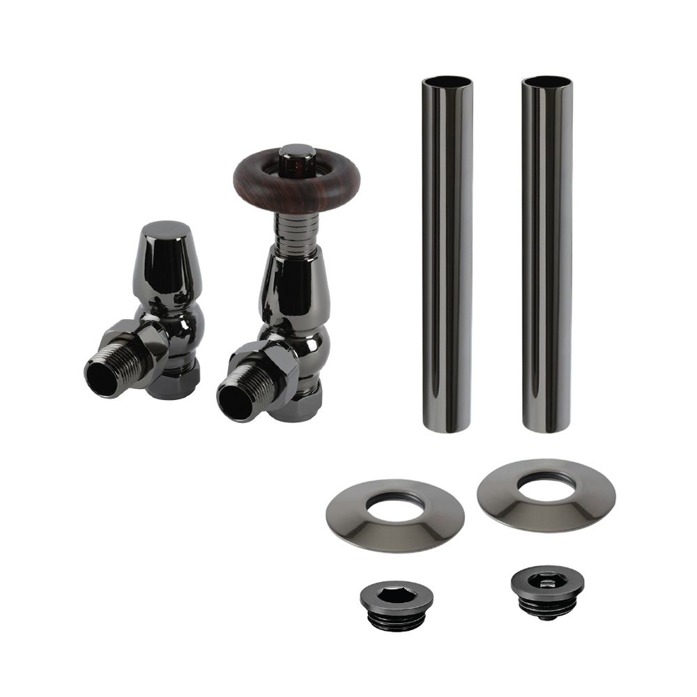 Milano Windsor - Traditional Thermostatic Angled Radiator Valve and Pipe Sleeve Set - Choice of Finish