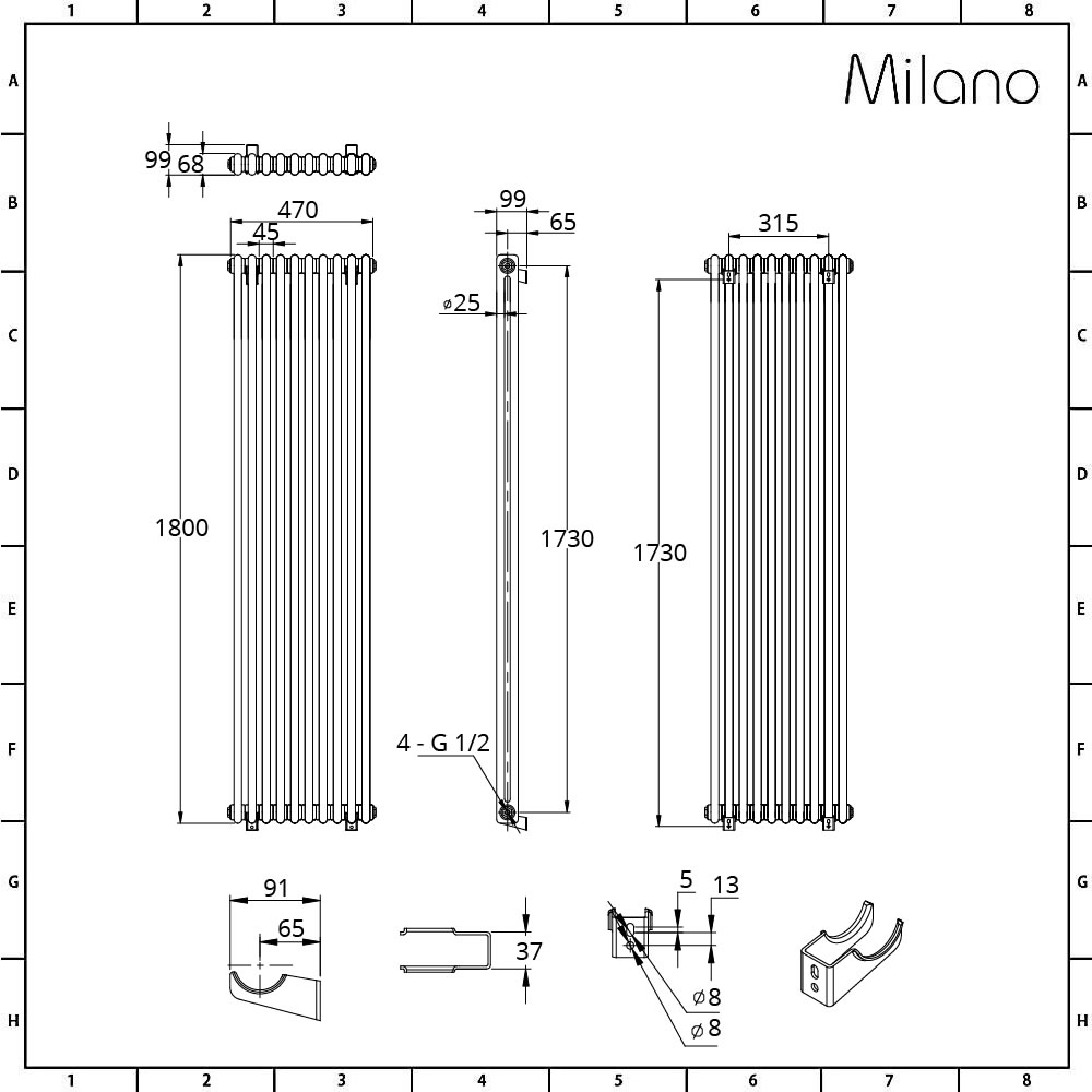 Perfect for completing the look of traditional rooms, the 1800mm x 470mm Milano Windsor vertical column radiator will also provide all the heat output you need.