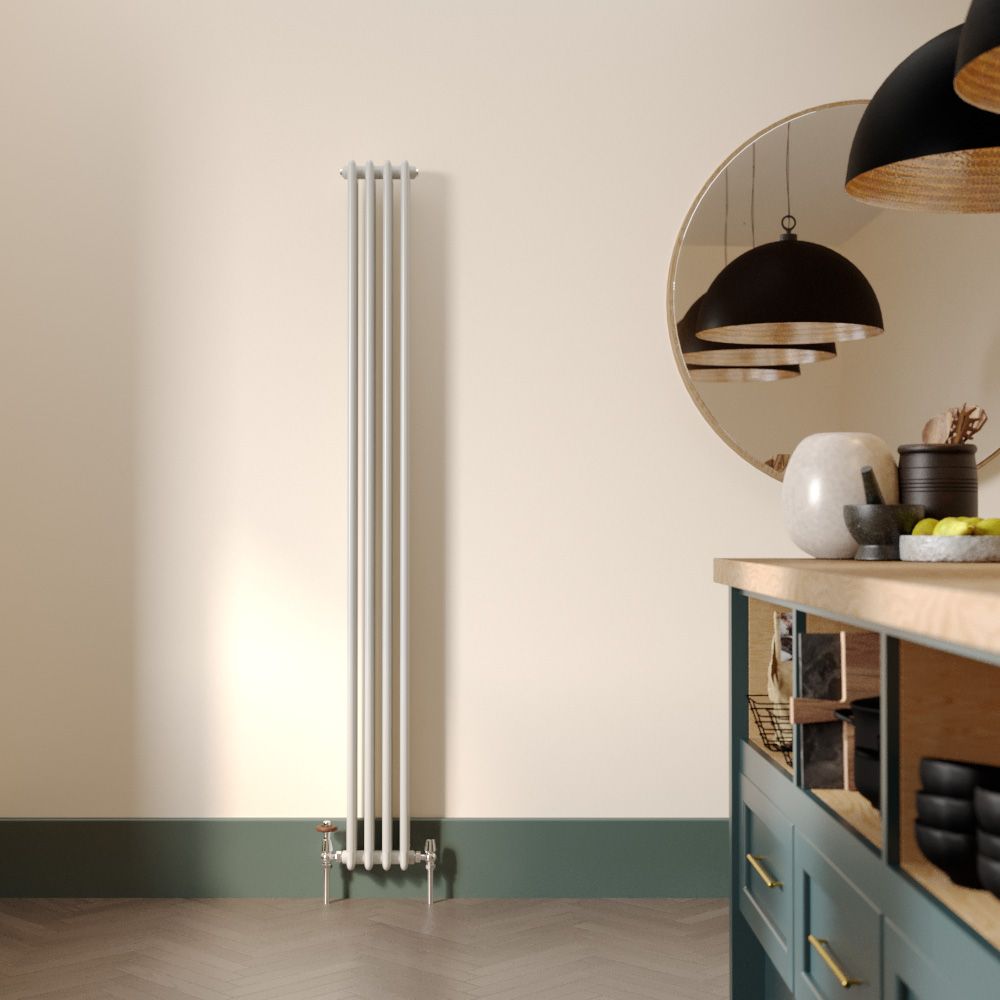 Perfect for creating a warm and welcoming feel in any room of your home this Milano traditional 1800mm x 200mm cast iron style column radiator will provide a very classic look that will remain a favourite classic. The vertical design is ideal for making the best possible use of wall space and the high quality white powder coat finish will easily complement any setting. This column radiator is made from tubular mild steel to ensure of long lasting good looks. Mounting brackets are included.