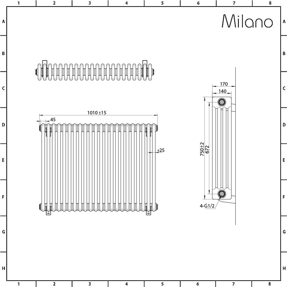 Milano Windsor - White Traditional Horizontal Four Column Radiator - 750mm x 1010mm