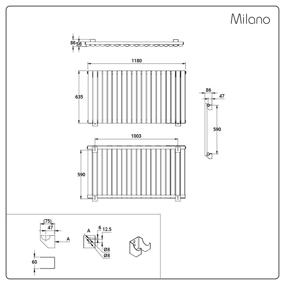 Whilst we do display measurements on the line drawings, due to the manufacturing process, there can be tolerances within them. We strongly advise not to drill any fixing holes for the brackets until you have received your radiator.