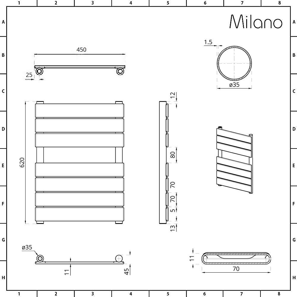 Great for the summer months when you won't make much use of your central heating system, this attractive Electric Milano x ECOSO Lustro Flat Panel Heated Towel Rail features a sleek chrome-plated finish and 7 horizontal bars for small towel storage.