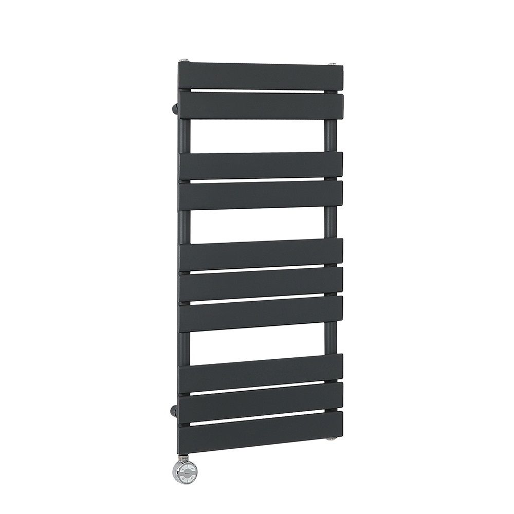Milano x ECOSO Lustro Electric - Designer Anthracite Flat Panel Heated Towel Rail - 975mm x 450mm - with Thermostatic Wi-Fi Heating Element