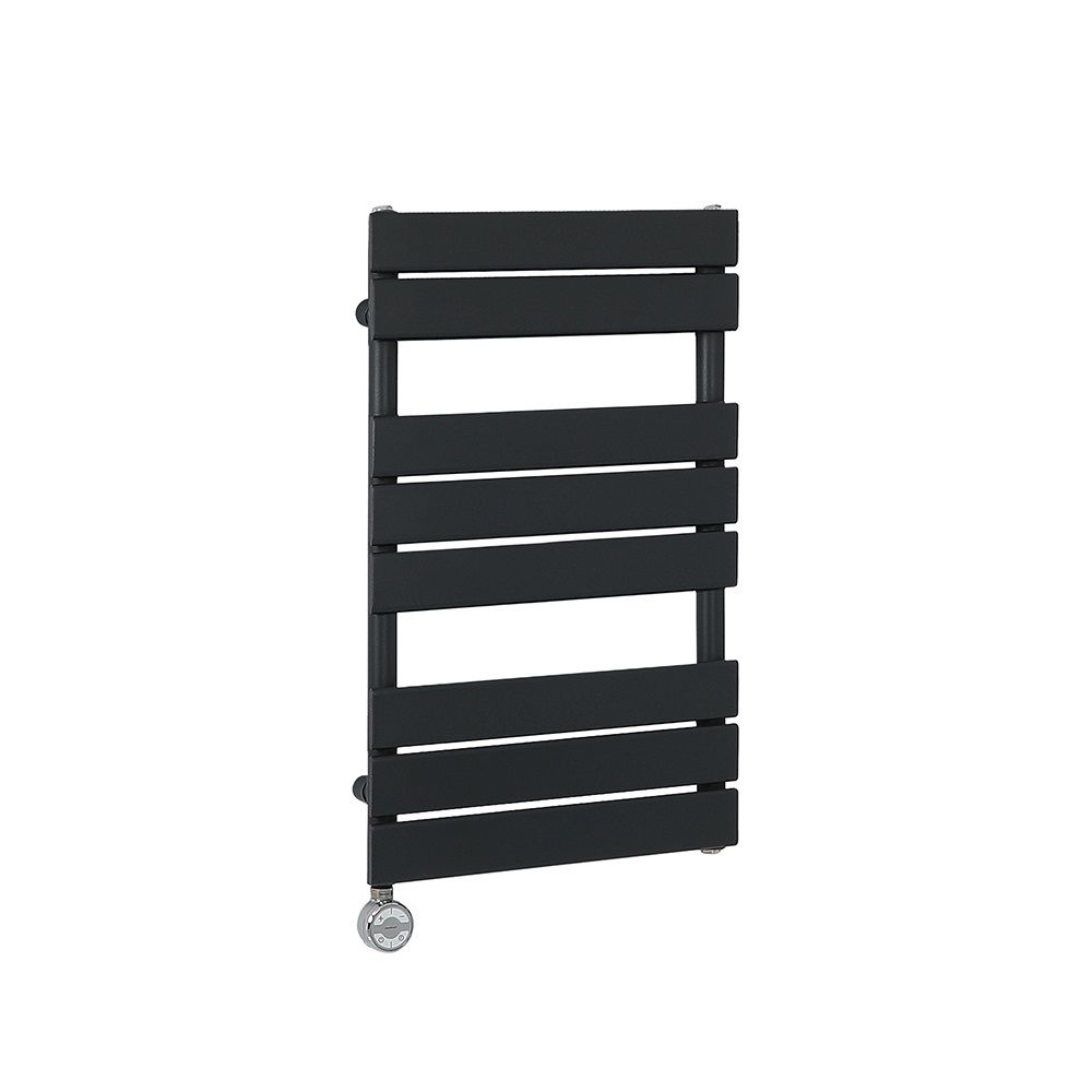 Milano x ECOSO Lustro Electric - Designer Black Flat Panel Heated Towel Rail - 825mm x 450mm - with Thermostatic Wi-Fi Heating Element