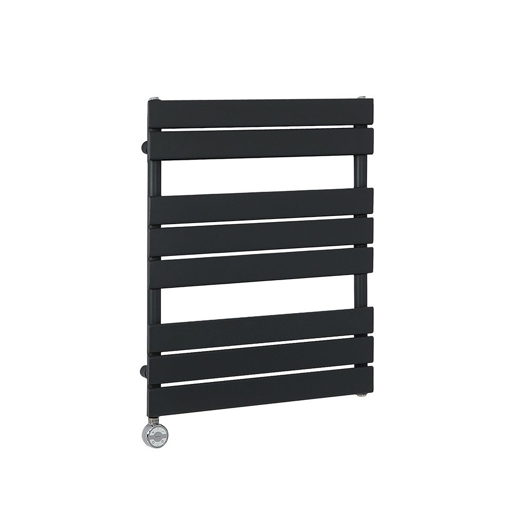 Milano x ECOSO Lustro Electric - Designer Black Flat Panel Heated Towel Rail - 825mm x 600mm - with Thermostatic Wi-Fi Heating Element