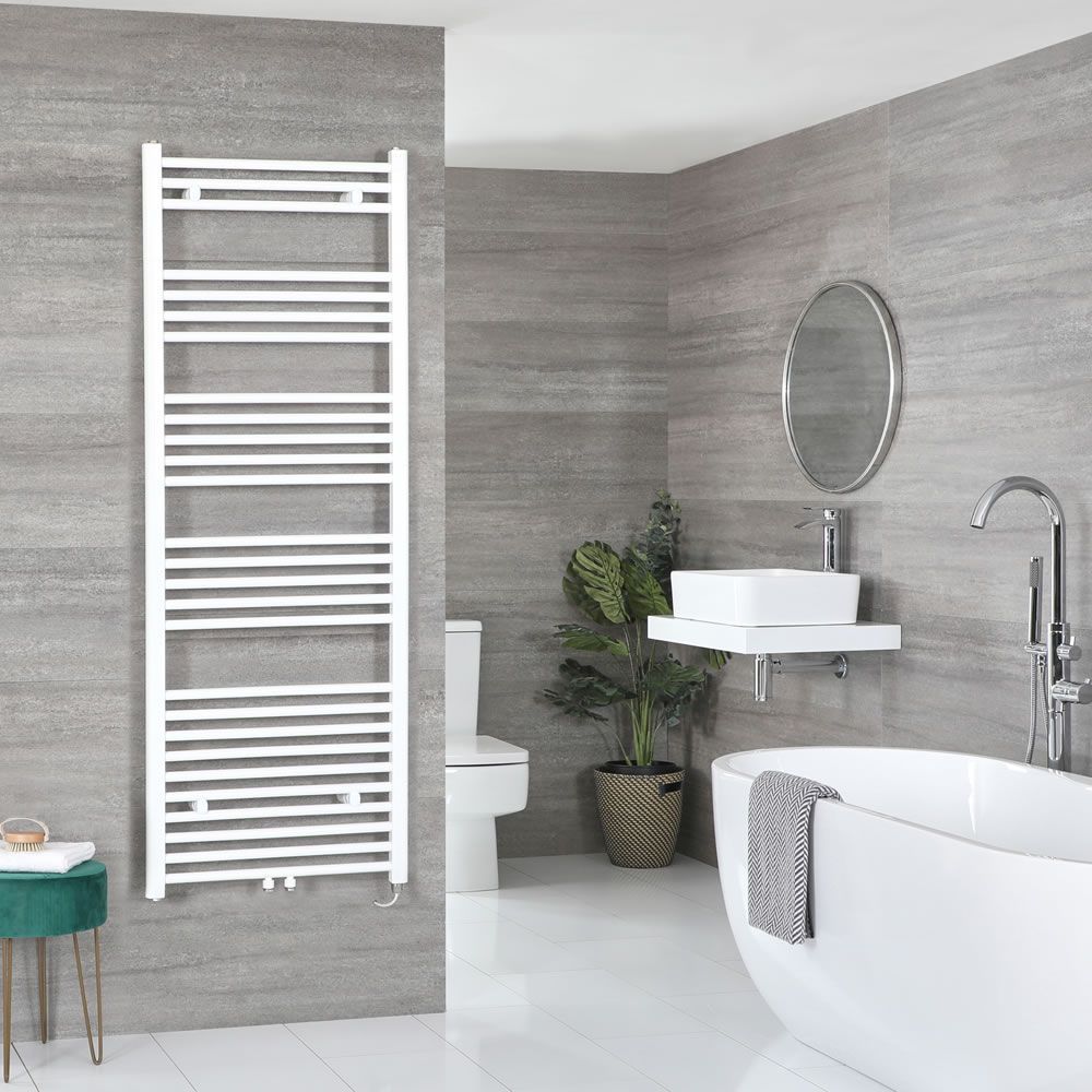 Milano x ECOSO Neva - Electric White Heated Towel Rail - Choice of Size and Heating Element